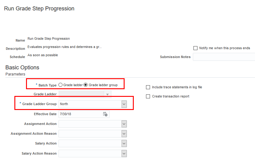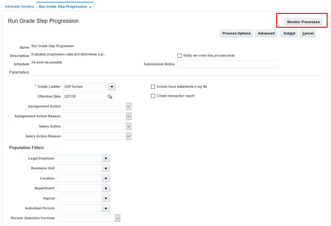 - You must create a process configuration group to override the default parameters. You can select it here from the list of values.