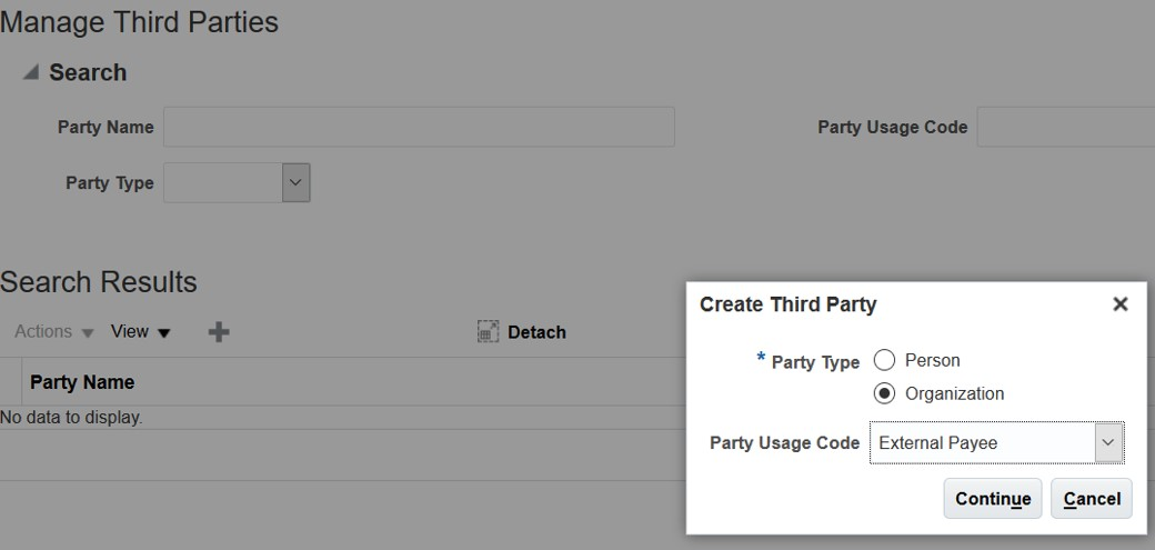 - Go to the Manage Third Parties task.