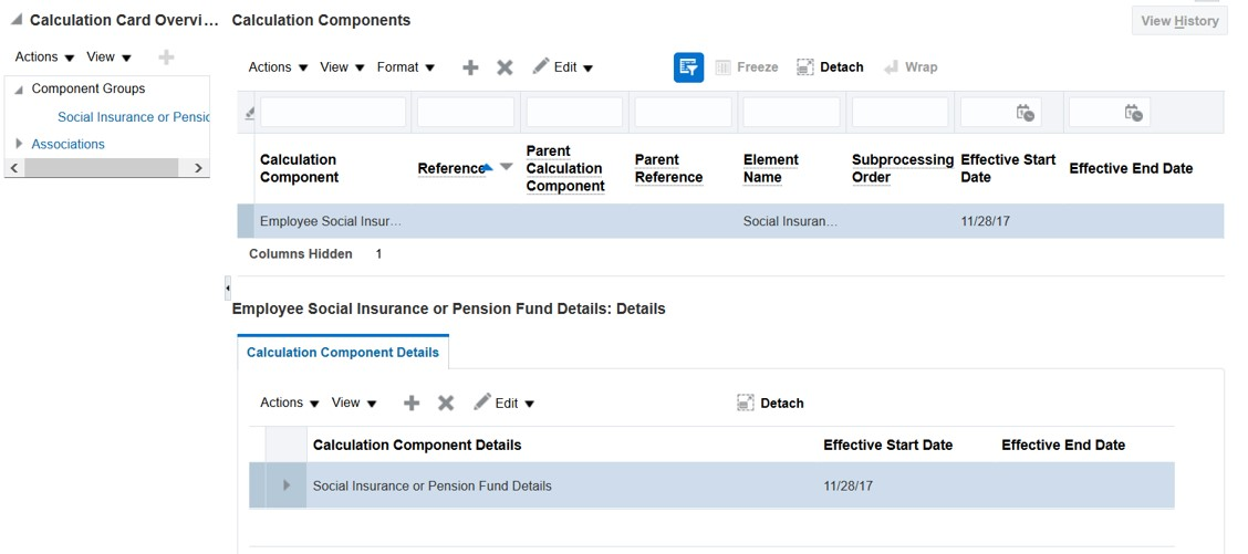 The employee social insurance or pension fund details calculation card can be generated automatically on new hire, or created manually.