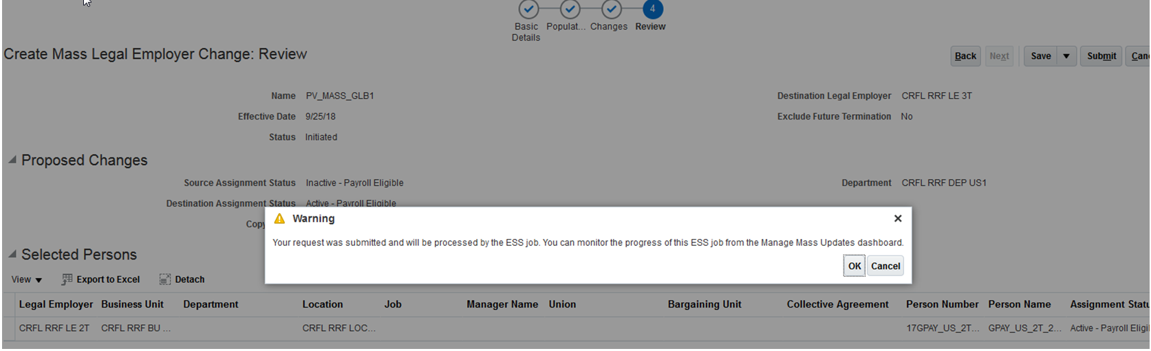 You can now automatically transfer a worker's payroll frequency to their new employment record during a mass global transfer. For example, if a worker is assigned to the ‘Payroll A Weekly’ payroll on their original employment record, you now have the option, using mass global transfer, to automatically transfer this payroll record, to include the frequency, to their new assignment record within the same Legislative Data Group.