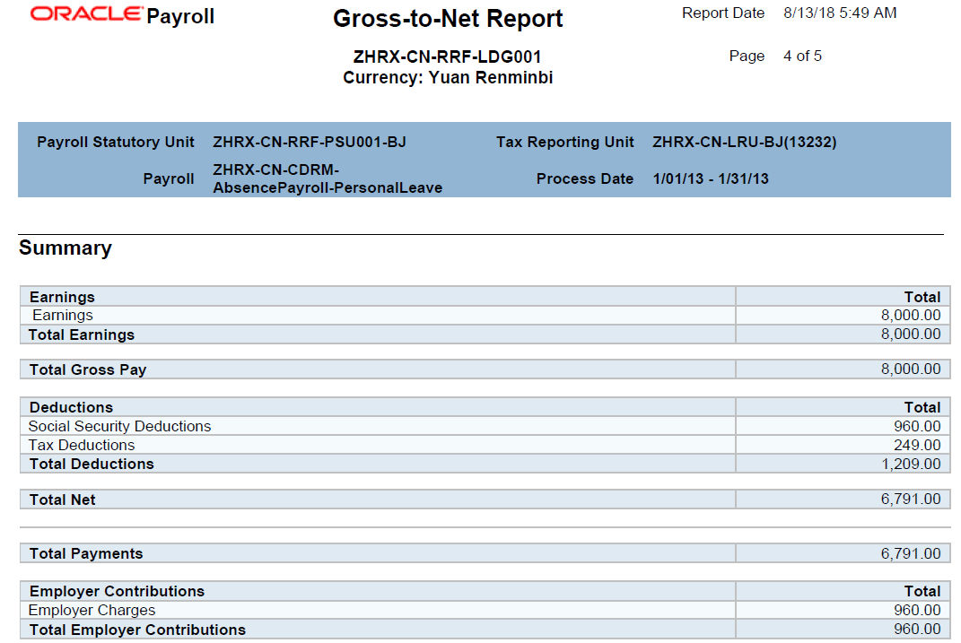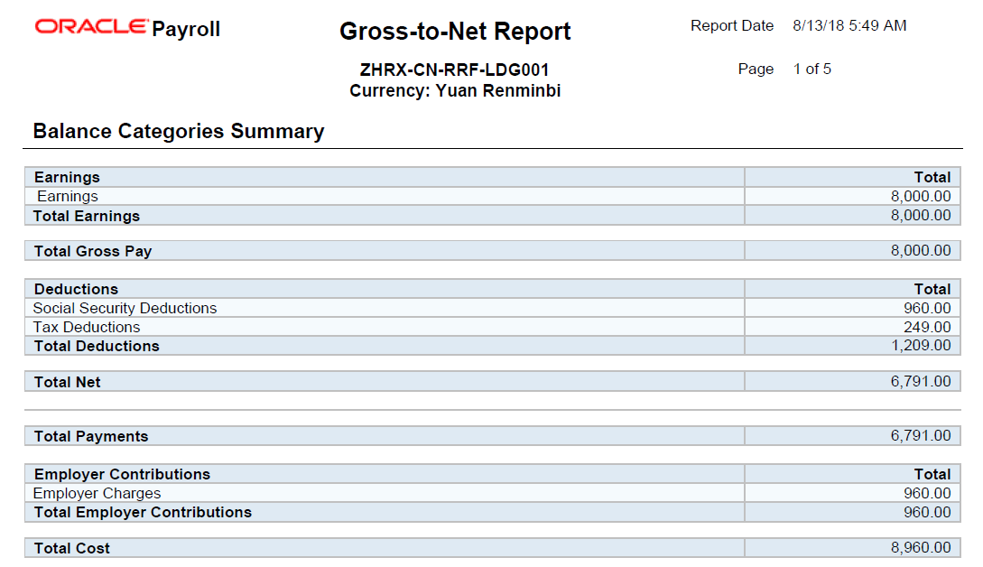 - Shows the difference (net pay) in the summary region of the statement of earnings. This difference is also taken into consideration during tax and social security calculation.