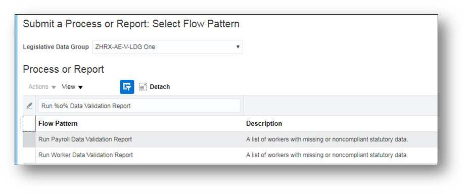 Use this process for larger data population, or if you want to validate a subset of employees only. It provides the same validations as the Payroll Validation Report.