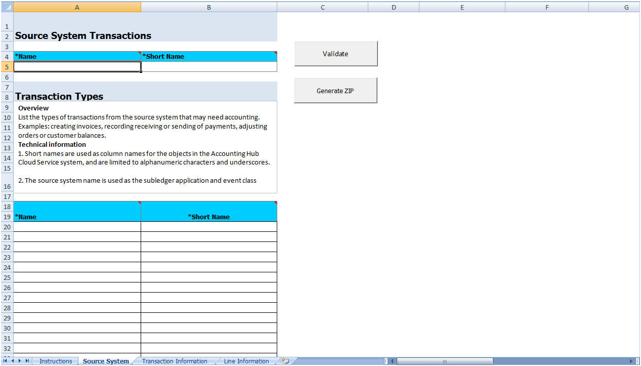 The following screenshot illustrates the simplified source system registration using the spreadsheet template: