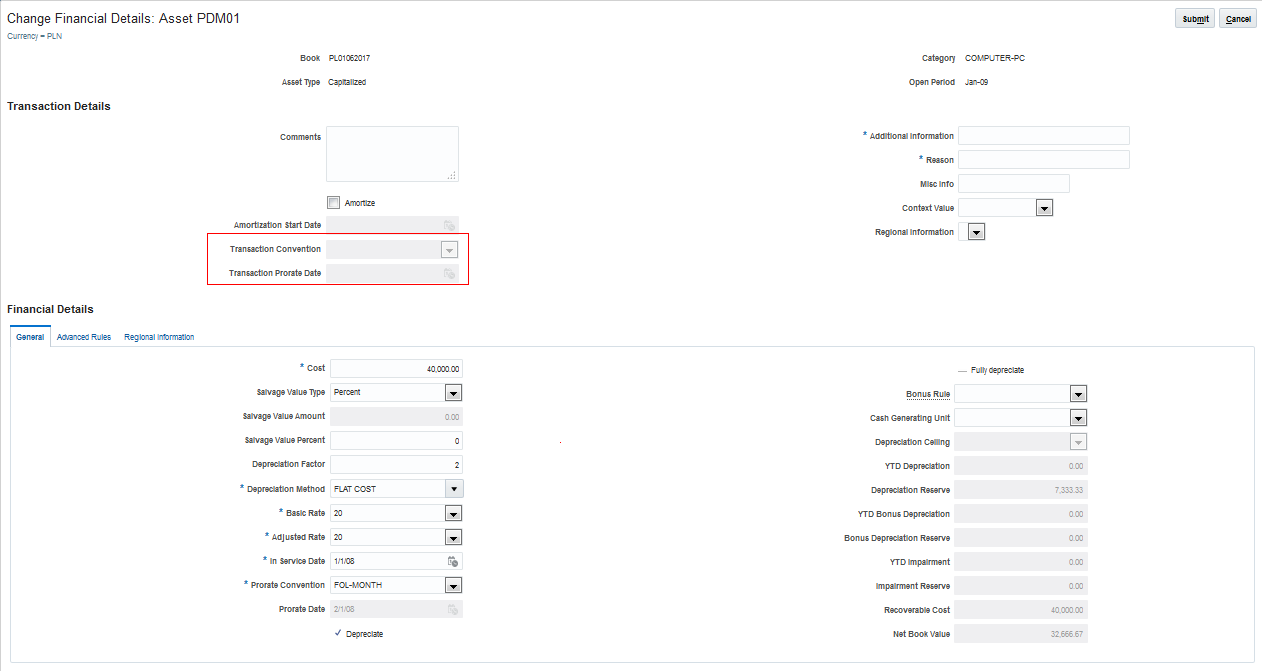Ensure that you define your depreciation calendar for as many fiscal years as possible.