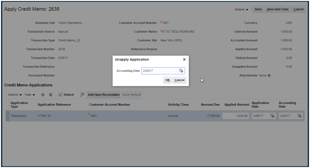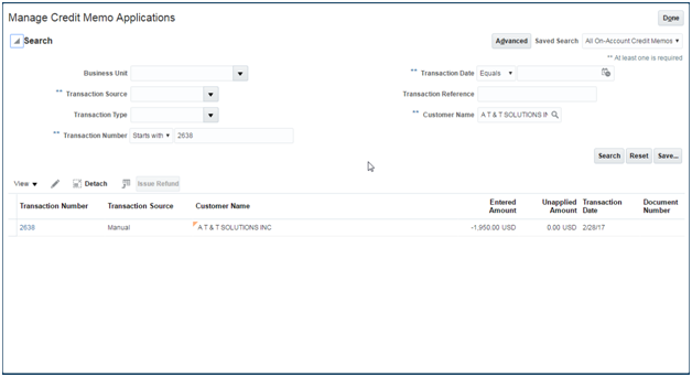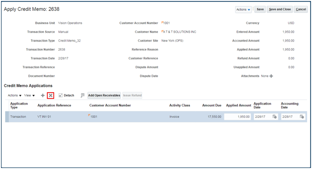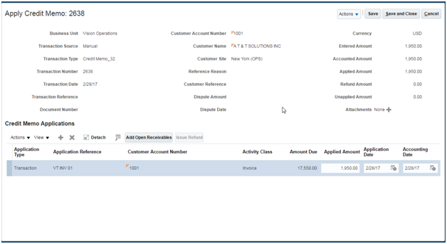 Receivables and Collections users can review customer comments in the Review Transaction page of the credit memo after the dispute has been approved.