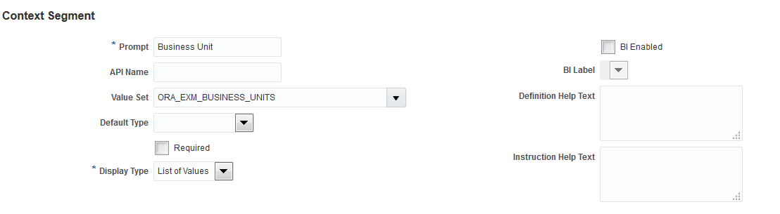 The following global descriptive flexfields must be entered on entities for correct reporting content: