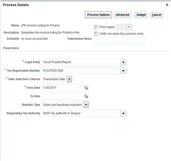 Once the reporting codes are defined, these are assigned to Legal Reporting Units, suppliers and customers (third parties) using the Manage Party Tax Profile task.