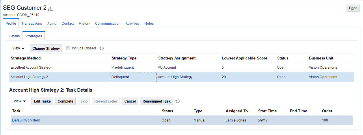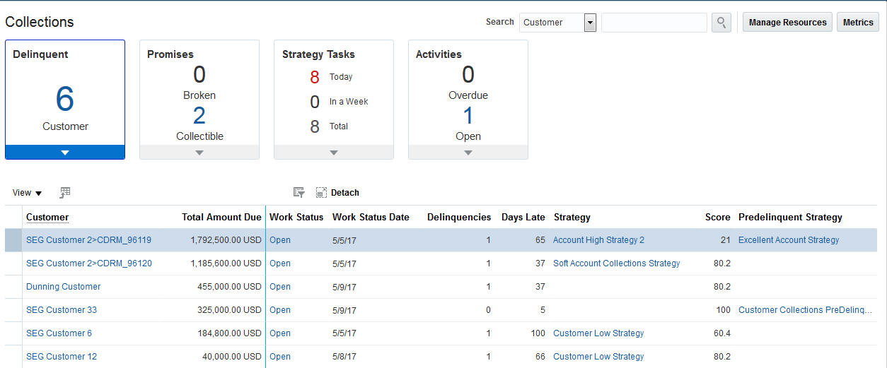 - Collections users can now access case folder notes and Receivables transaction notes associated with the transaction installment from the Collections Delinquent Customer Transaction tab of the customer account.