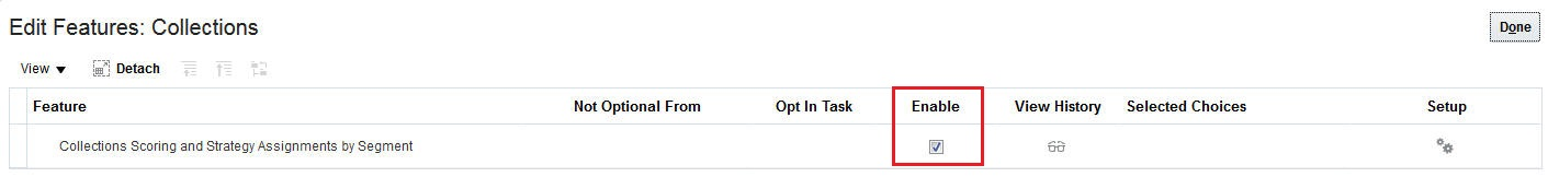 - On the Edit Features page, select the Enable option for the feature, and then click Done.