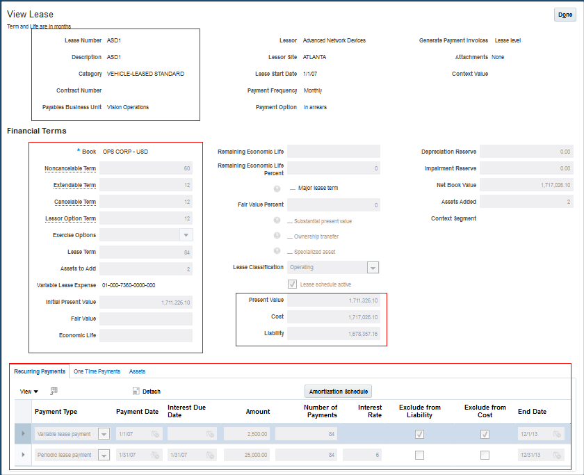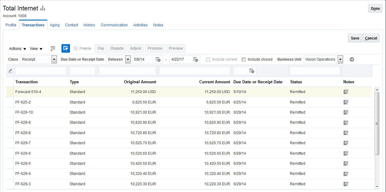 In Receivables, the user can query a transaction and review an installment note created in Collections.