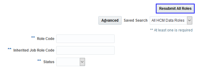 The Resubmit All Roles button is now available to all users of the Manage Data Roles and Security Profiles page to regenerate data and abstract roles.