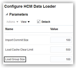 When you load business objects using HCM Data Loader, the load-group size is the number of business objects processed as a single unit of work on a single thread. In Release 12, you could specify a default load-group size for the enterprise on the Configure HCM Data Loader page.