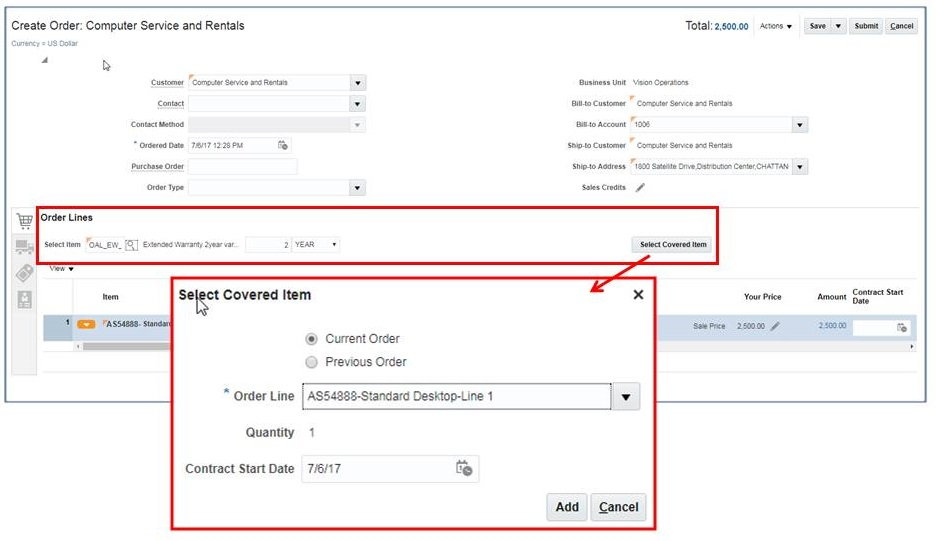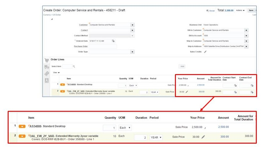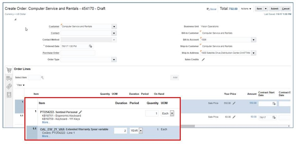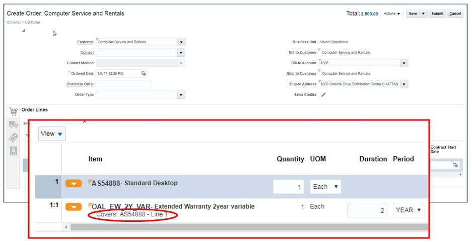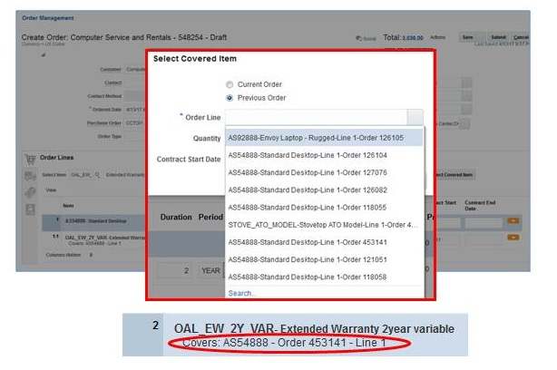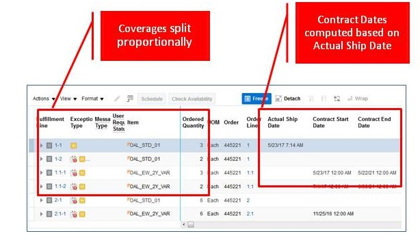 Selling coverage services, such as extended warranties, with an item on an order or after an item sale provides an additional high margin revenue stream. Offering products with a subscription model can simplify purchases for customers and make revenue more predictable through recurring sales. The ability to order and process both coverages and subscriptions in a common format will help prevent order errors and reduce order processing costs. Coverage and subscriptions services include the following: