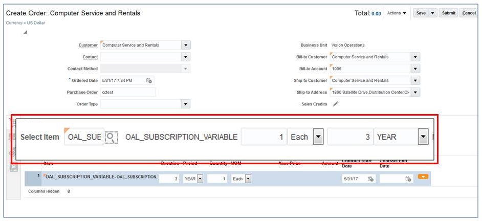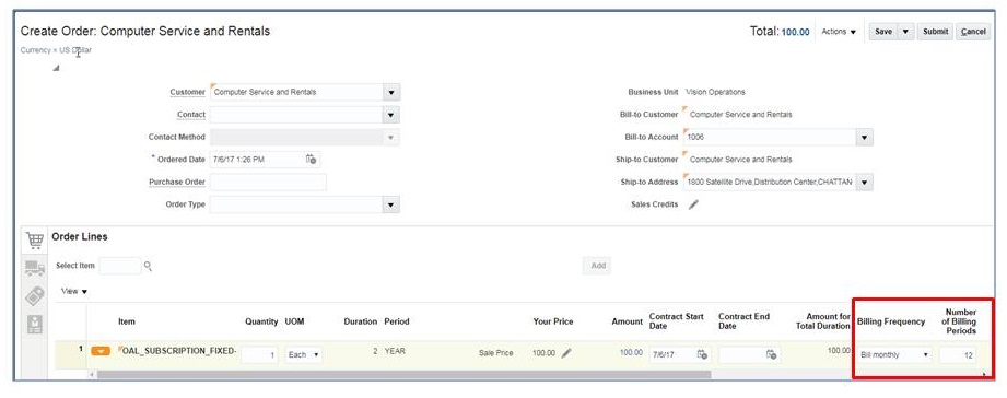 - New product type for subscription services, with the ability to leverage Order Management business rules, validations, and processing constraints during order capture and fulfillment processing