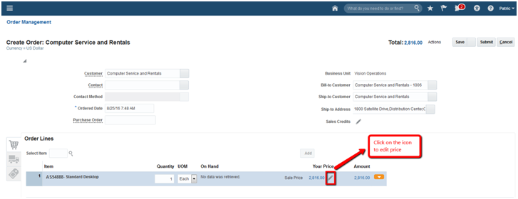 This ensures that all orders conform to pricing and discount strategies setup by corporate pricing policies, which allows you to manage order profitability, discounting discipline, and compliance.