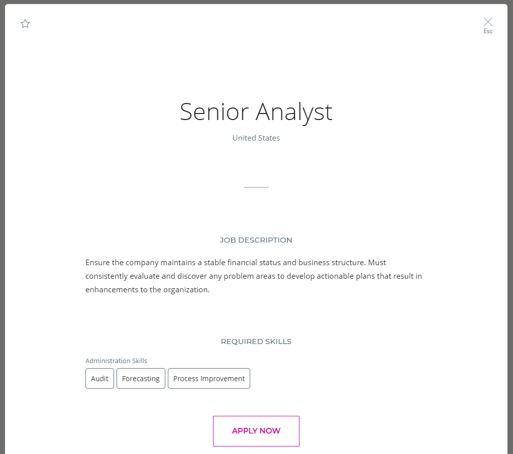 Give users the ability to configure which columns and fields appear in job application list views. Administrators can configure views available to specific roles or all users. Users with a new privilege can configure their personal views. |