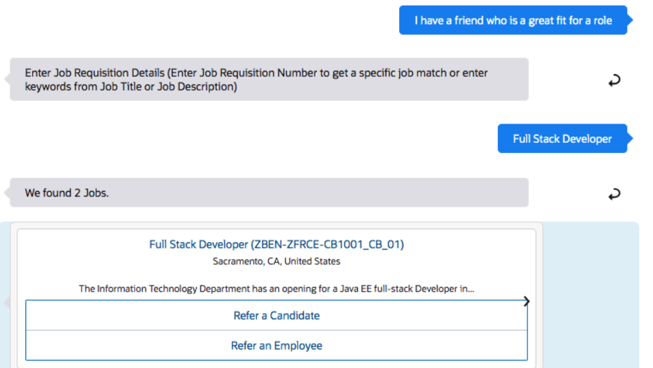 Oracle Digital Assistant - Refer a Candidate Using Internal Candidate Experience Skill |