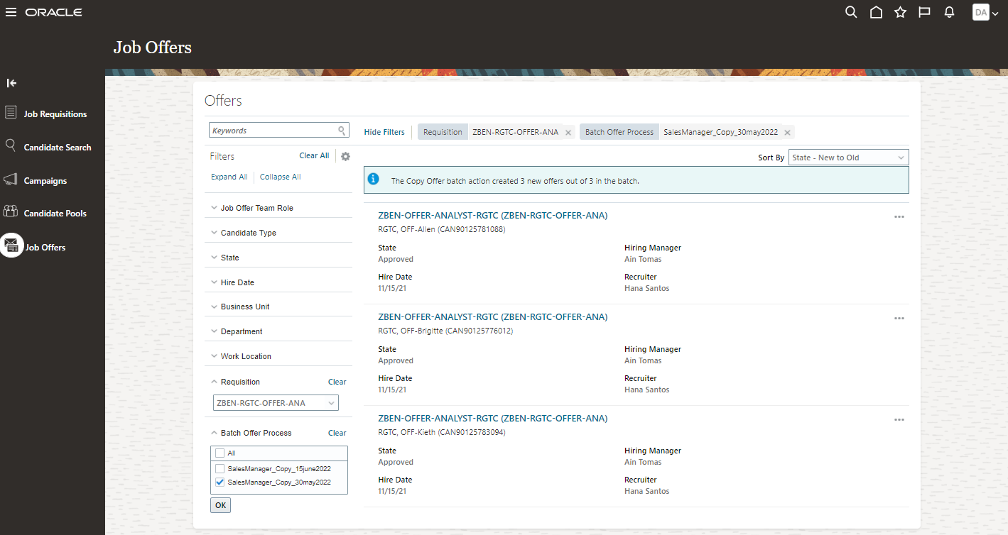 With these new streamlined processes, HR specialists can move internal candidates quickly and efficiently into their new assignments. They also have more flexibility on how to proceed.