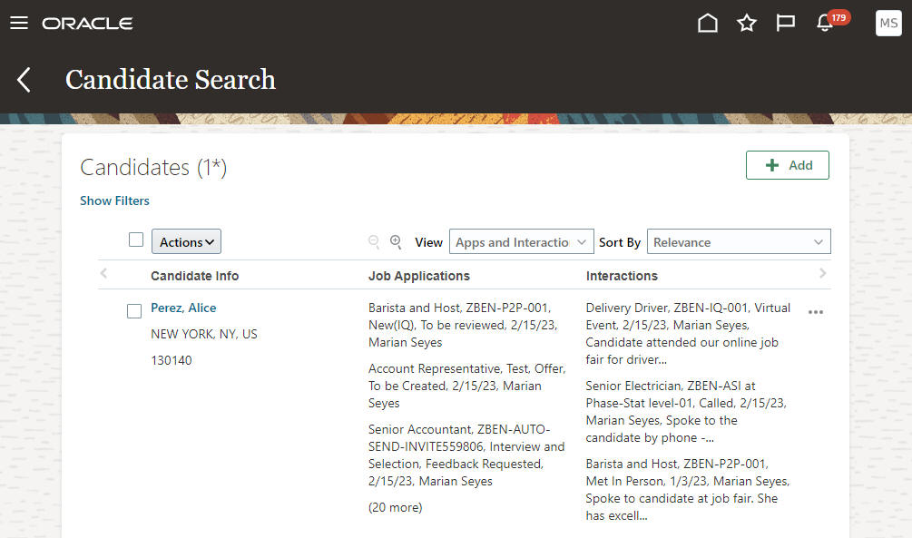 - Latest Job Applications and Interactions in Grid View in Search Results List