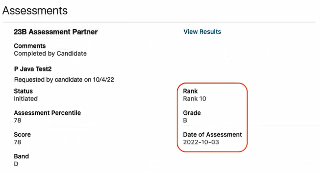 - ASSESSMENT SUCCESS: A candidate being returned to the application by the partner after starting the inline assessment.
