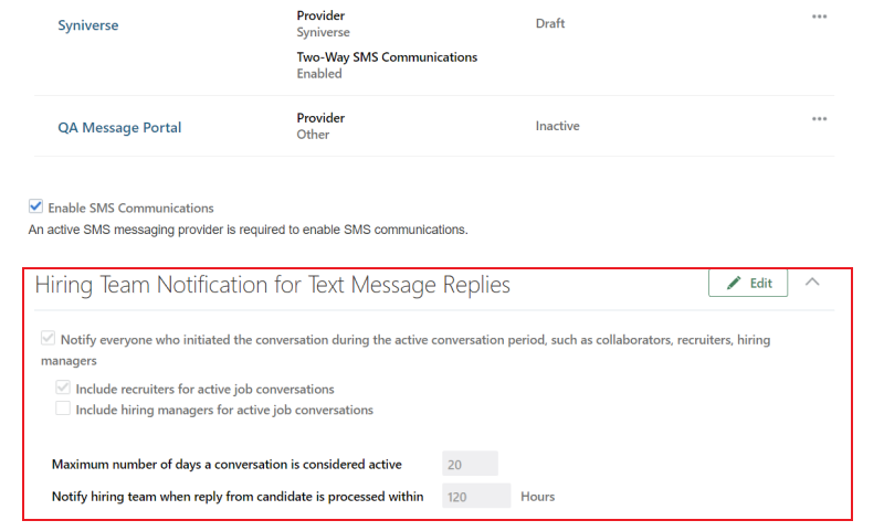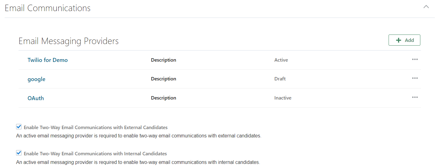 NOTE: Only one email provider needs to be Active for two-way communication with internal candidates.