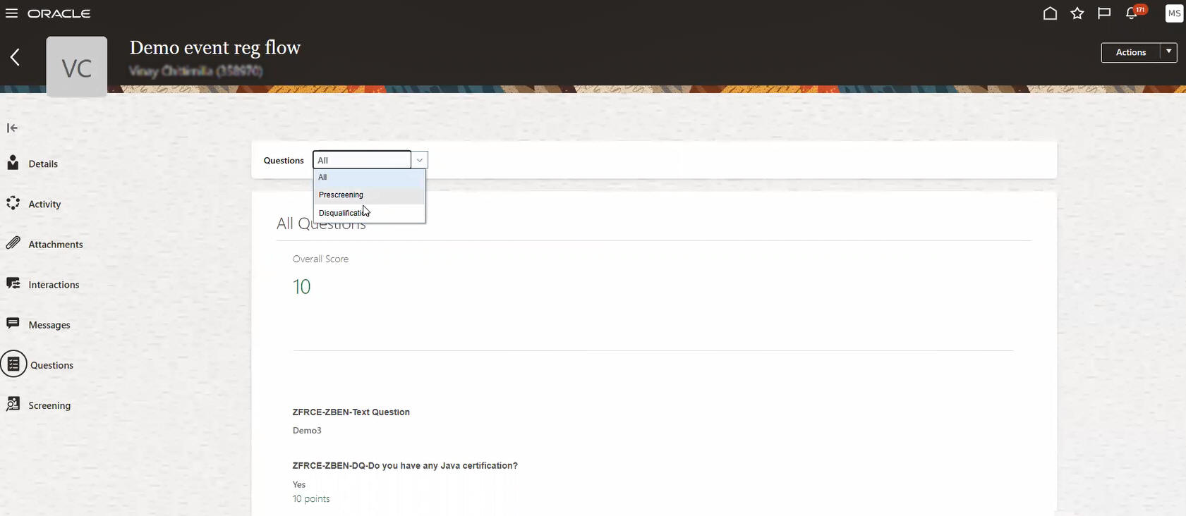 Oracle Recruiting Booster enables hiring managers and recruiters to engage candidates at scale via conversational experiences and two-way messaging; create and manage hiring events with registration flows, pre-screening questionnaires and scheduling capabilities; manage shared interview schedules, sync with calendars to automate interview scheduling, distribute interview guides and collect feedback from the interviewers. This product requires a separate license.