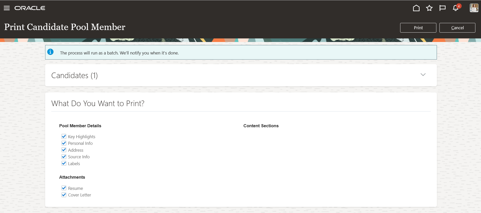 | 28 JUL 2023 | Recruiting / Candidate Pools | Print Candidate Pool Member | Updated document. Revised feature information. |