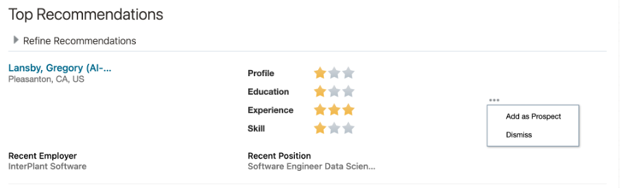 Enriched Candidate Top Recommendations with Matching Criteria |