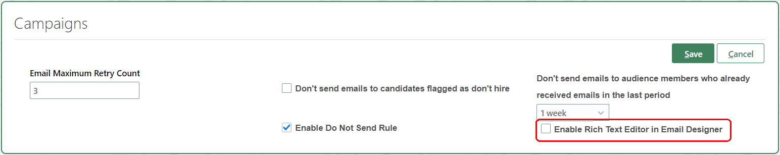 - Click Edit. There is a new Enable Rich Text Editor in Email Designer check box