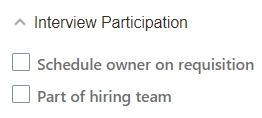 - Part of hiring team: When you select this option, interviews for requisitions where you’re part of the hiring team are listed. You can be part of the team as hiring manager, recruiter, or collaborator regardless of the collaborator type.