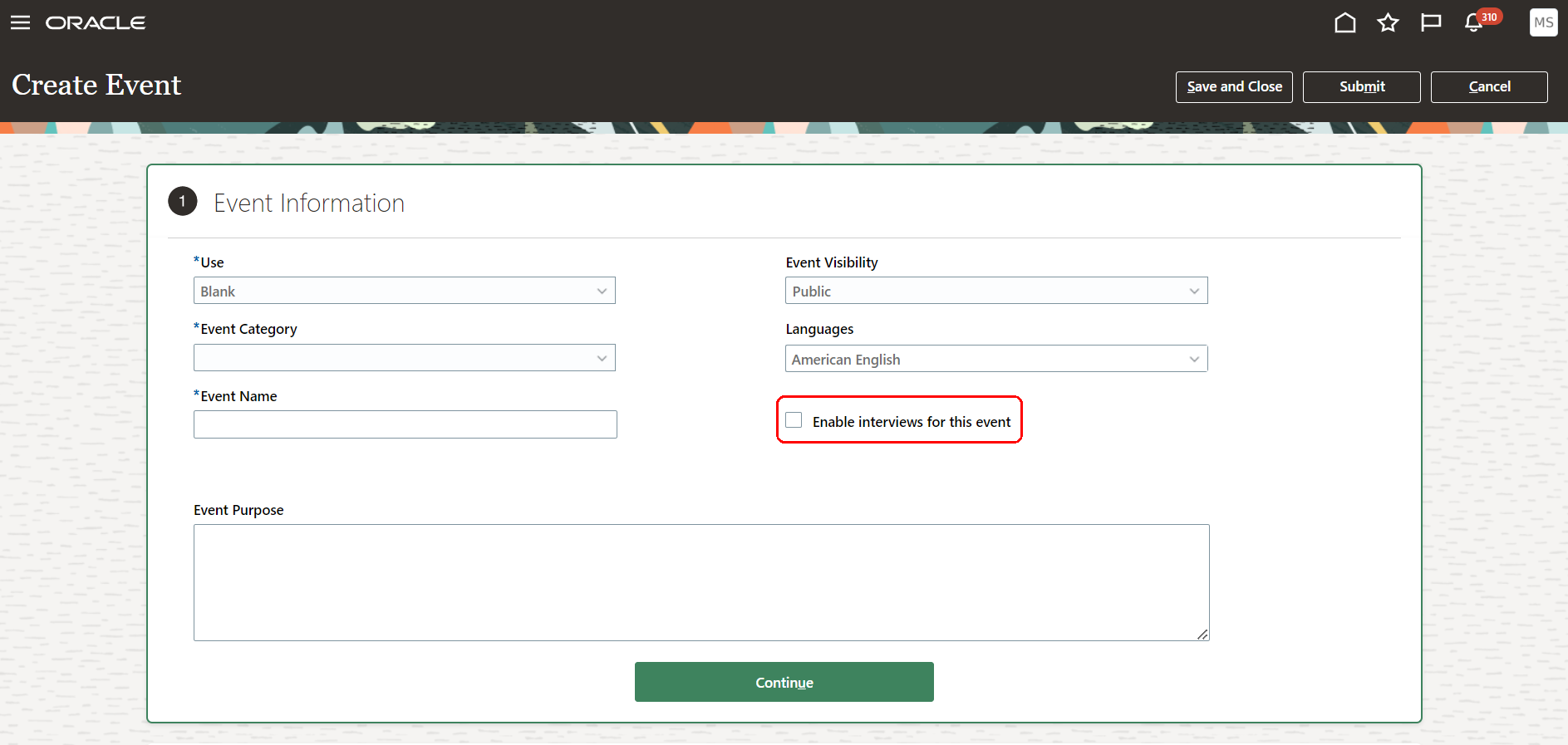 Manage walk-in interviews for mass hiring events by enabling interviews for the event. Use the new Enable interviews for this event check box while creating events on the Create Event page.