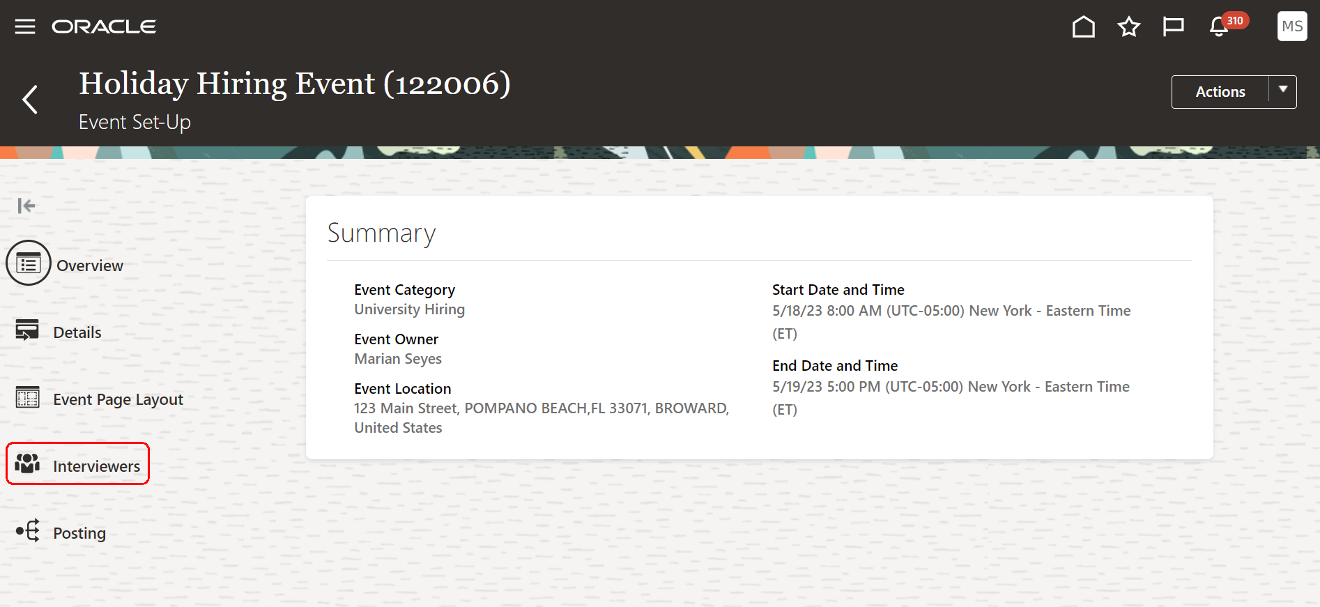 Once enabled, a new Interviewers tab displays when the event moves to event set-up phase