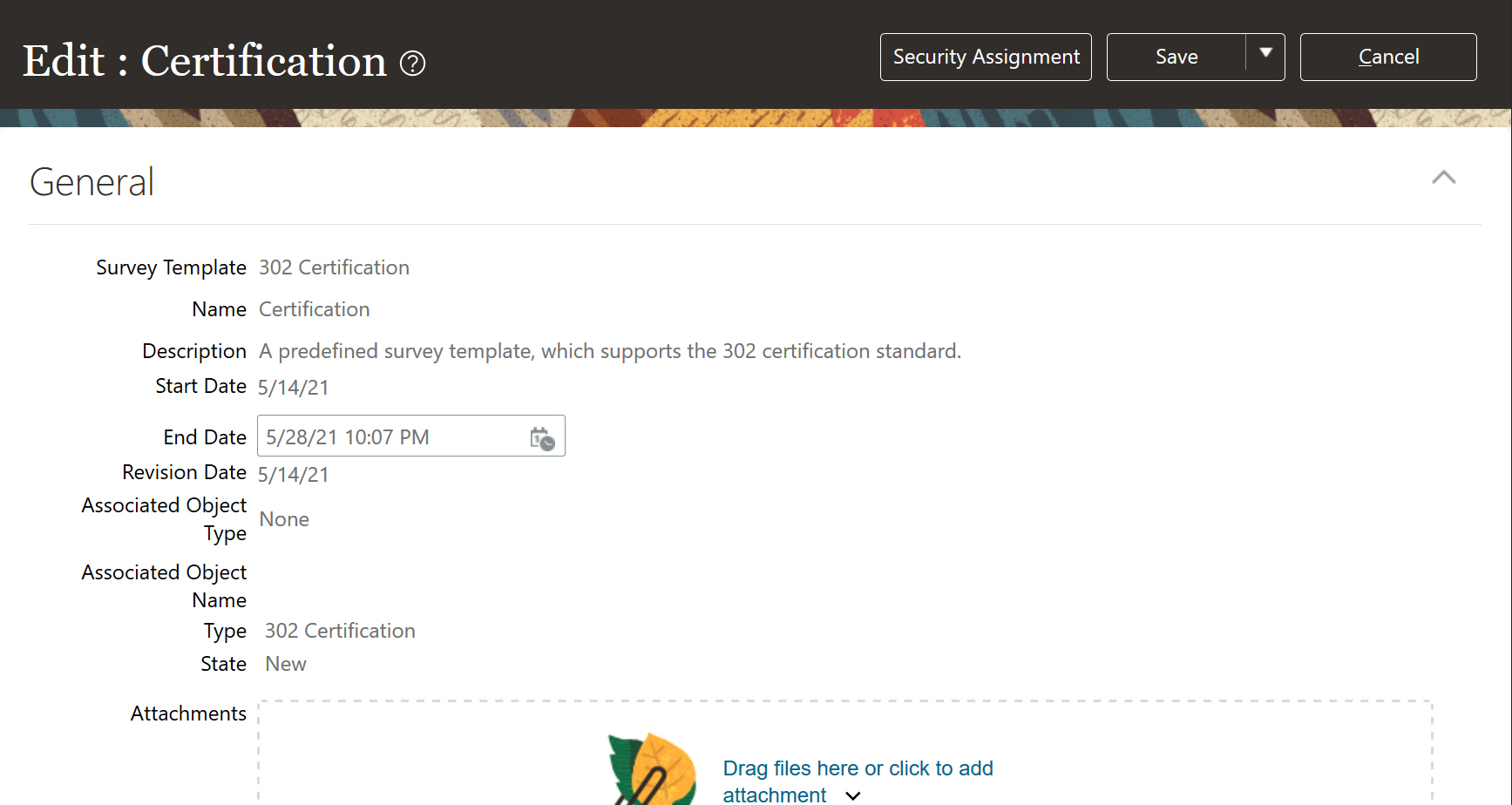 Surveys can now be secured. Conceptually, security for surveys works in the same way as it does for other Risk Management objects. Each survey must have at least one owner; by default, that's the user who creates the survey. That person may optionally authorize additional owners, editors, and viewers. An owner can select individual users for these assignments, or can create and select groups that grant these assignments. No additional workflow authorization is available. Owners use a Security Assignment page to authorize users, and that page is available only after the survey has been saved for the first time.
