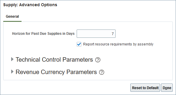 If you prefer to run your sales and operations plans without these new measures then a plan option is available to turn off the feature. Navigate to Edit Plan Options > Supply tab > Click the Advanced Options button, and then deselect the Report resource requirements by assembly option.