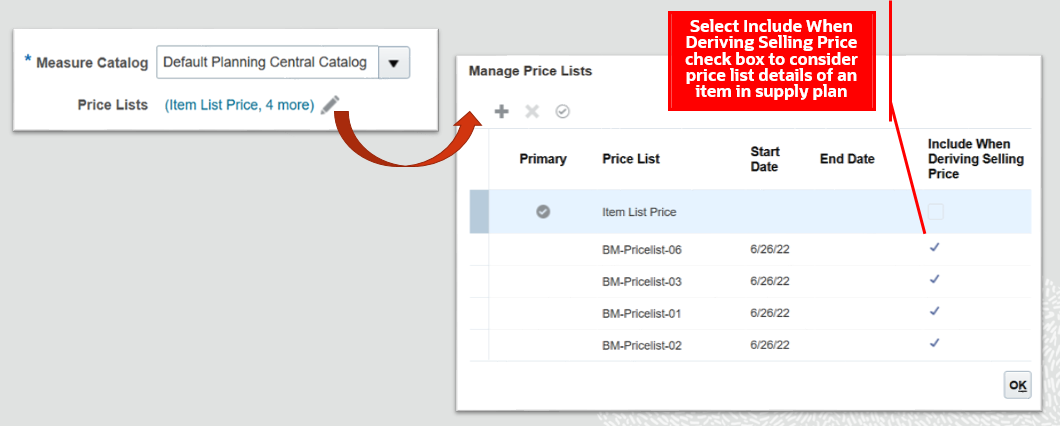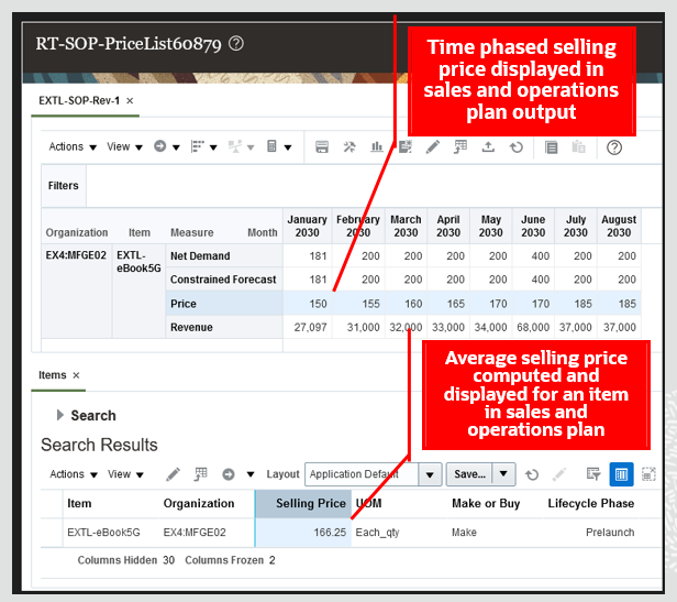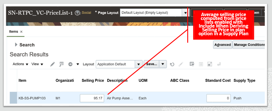 - Item List Price price list details are included in deriving average selling price of an item in supply plan and sales and operations plan.