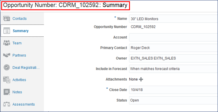 Using the summary views for leads and opportunities, salespeople can quickly view a summary of their leads and opportunities to get better oriented for their day. This feature also helps salespeople prioritize work and easily take actions to help improve sales team efficiency and increase the sales pipeline.