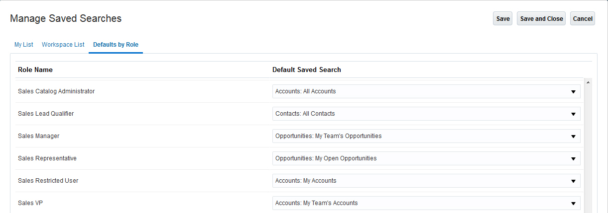 This release adds new administration capabilities to the Manage Saved Searches box. These capabilities let you assign saved searches and default saved searches to user roles. The Manage Saved Search box also features usability enhancements. As in previous releases, users can also set their own personal default saved search, and create their own personal saved searches.