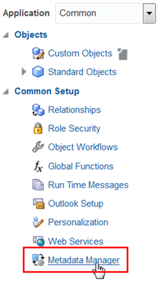 - From the navigation tree on the left, under Common Setup, click Metadata Manager.