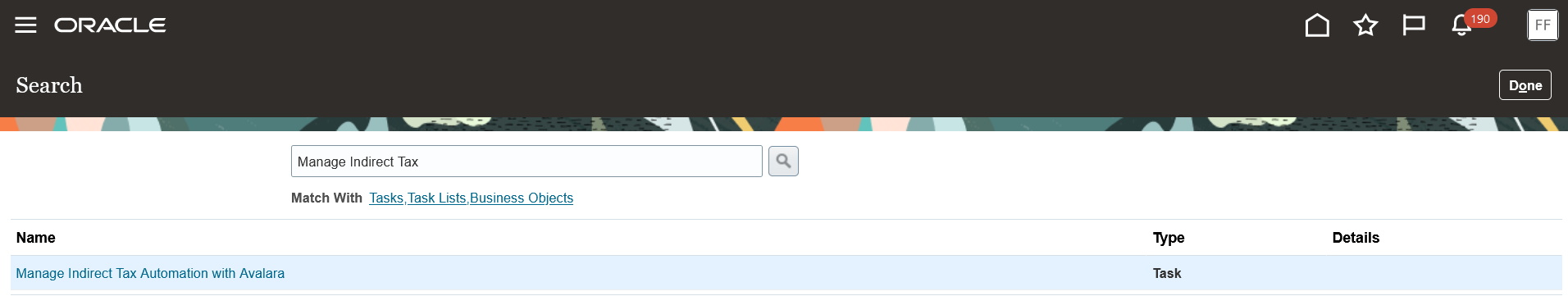 You need to have a job role assigned that has the privilege Manage Tax Partner Configuration (ZX_MANAGE_PARTNER_CONFIGURATIONS_PRIV) to access the Manage Indirect Tax Automation with Avalara page. The Tax Administrator role has this privilege so you can access the page if you have this role assigned.