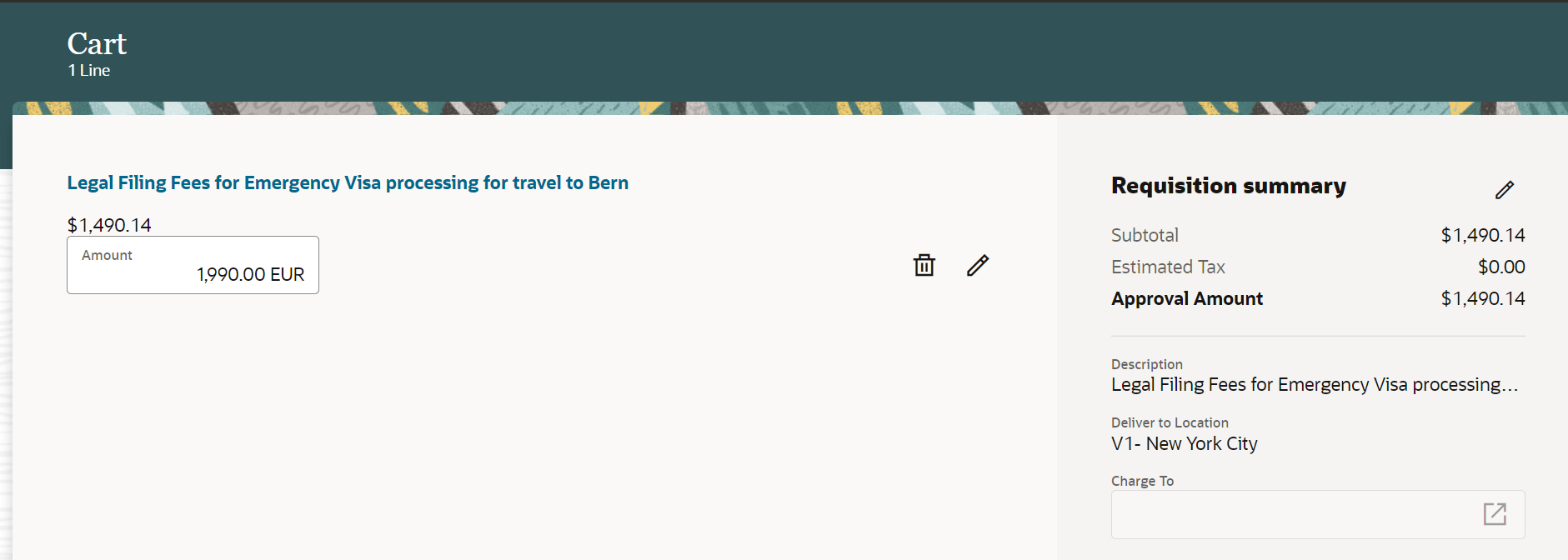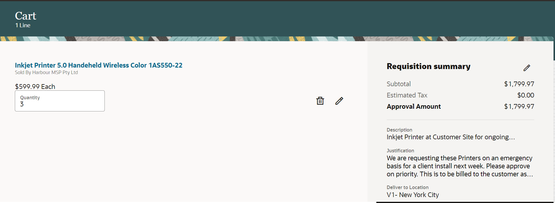 - Justification is linked in the Shopping Cart summary, clicking which navigates you to the edit header flow to edit justification or other details.