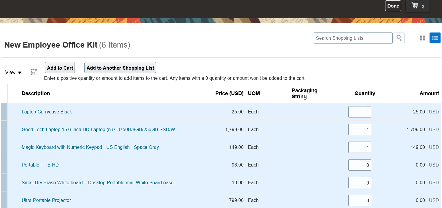 Configure Shopping Lists with 0 Specified as the Quantity for the Shopping List Items