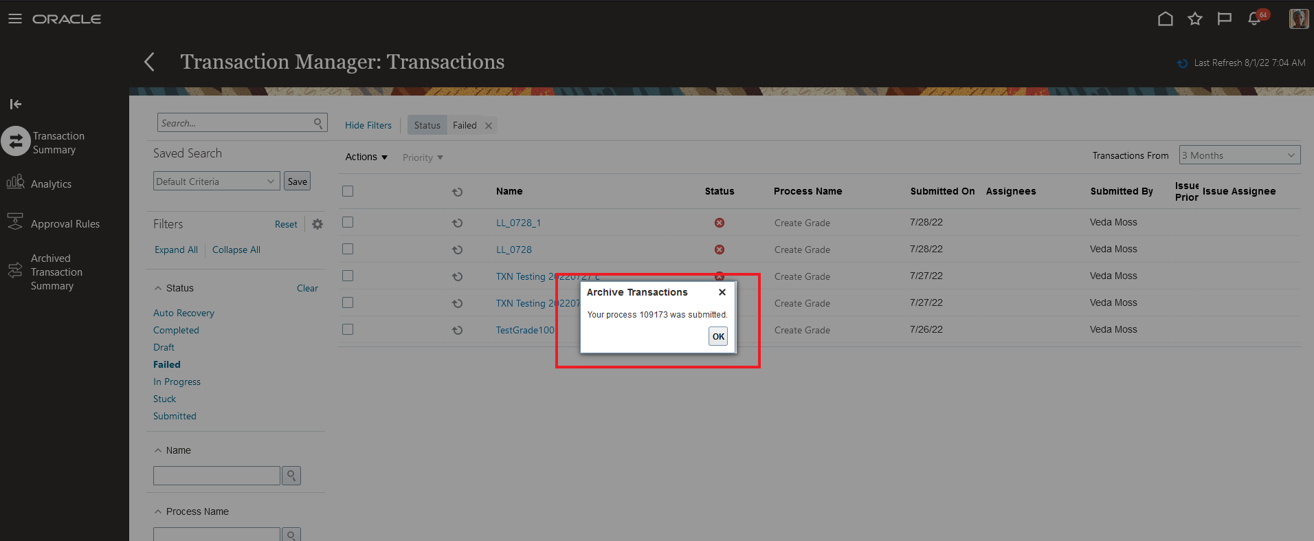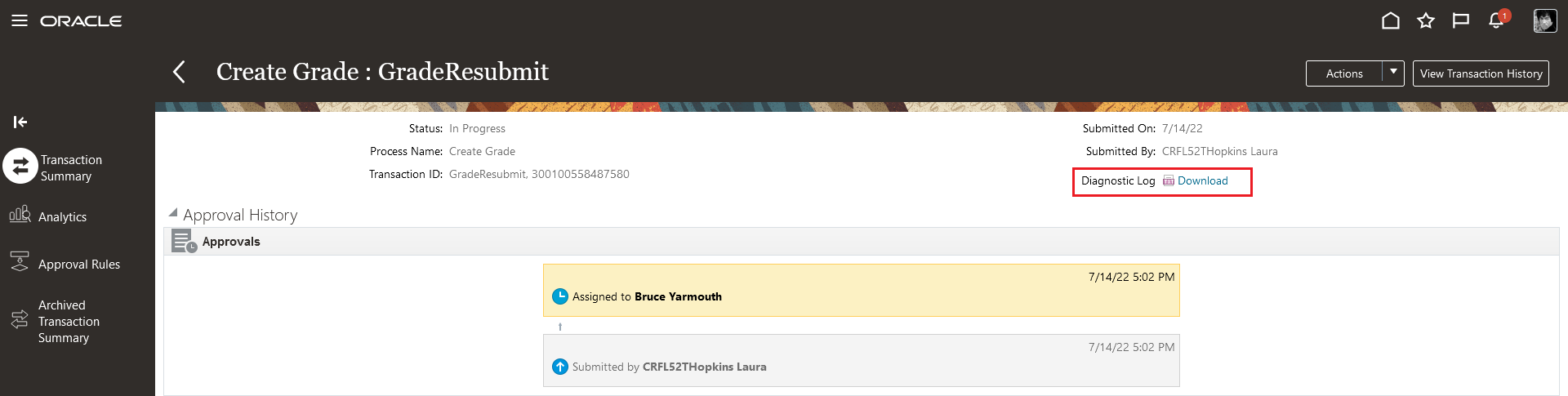 Diagnostic Log Availability and Attachments in Transaction Console |