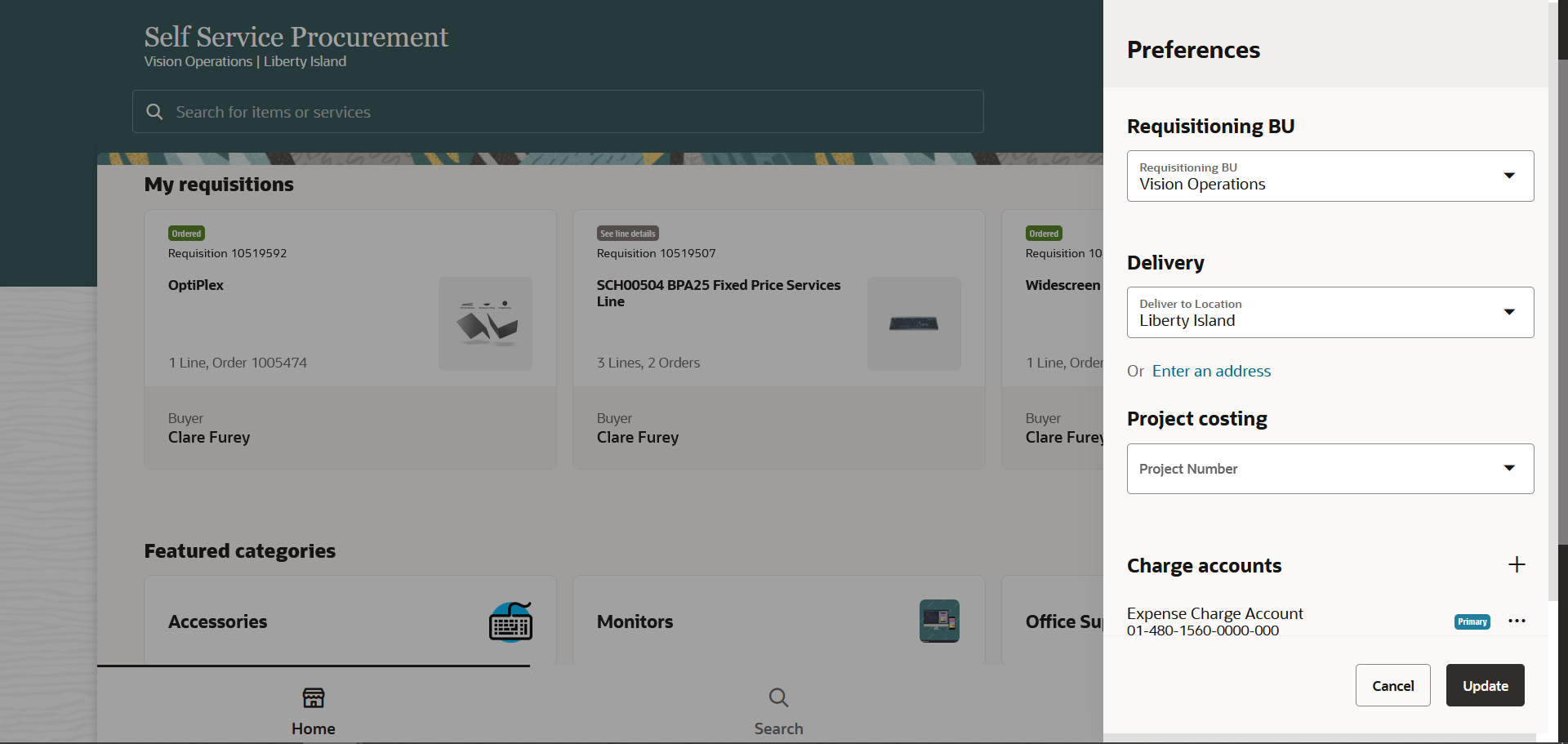 - Easily procure goods and services because you can now manage and update preferences in the application. Your preferences can then be used across all requisitions and requisition lines, making shopping easier and faster.