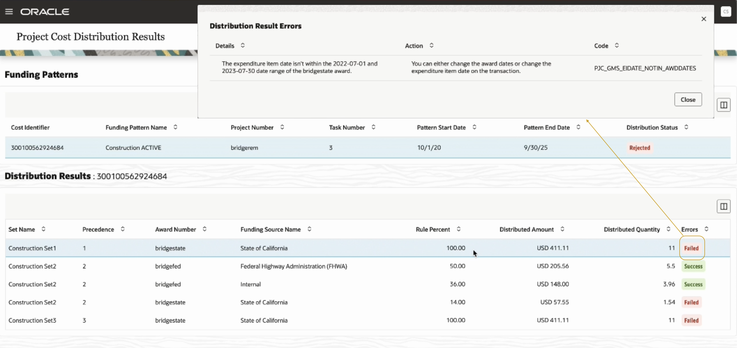 - After the transfer order is shipped and received, and the transfer order receipts are accounted in Oracle Supply Chain Receipt Accounting, import and review transfer order costs as project costs.