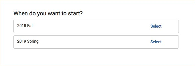 Once you have associated one or more admit periods with a published application form, prospective students have to choose one of those admit period options to start their program.