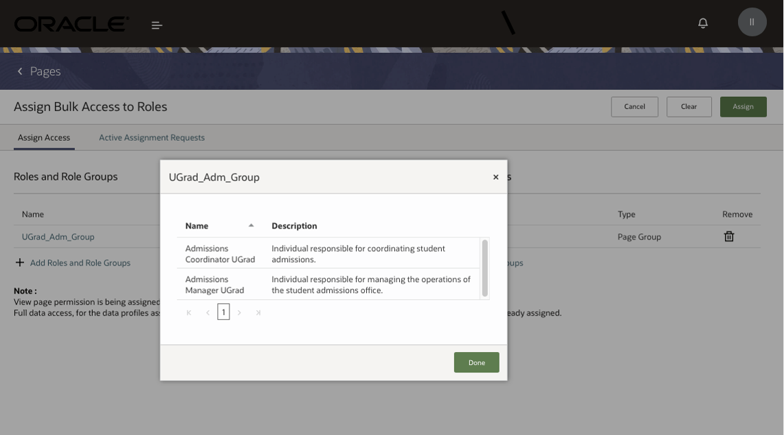 Page Access Assignment to a Role Group