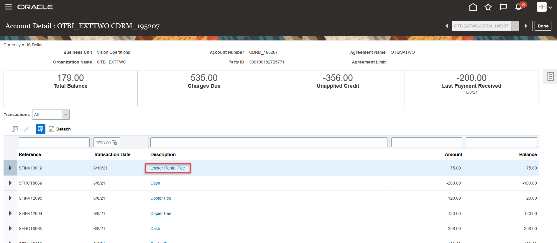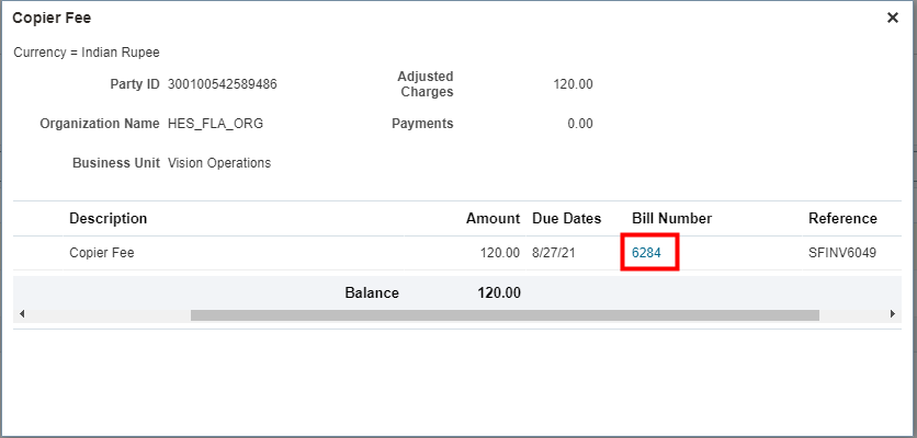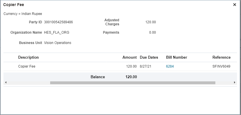 Currently, only institutions can view the accounts of external organizations and generate billing. After the billing is generated, bursars or administrators can access a PDF copy of the organization's bill from the organization's account page. For more information, see Transaction Details on Organization Accounts.