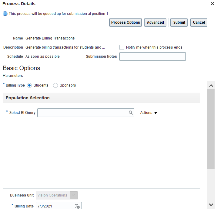 Generate Billing Transactions Page