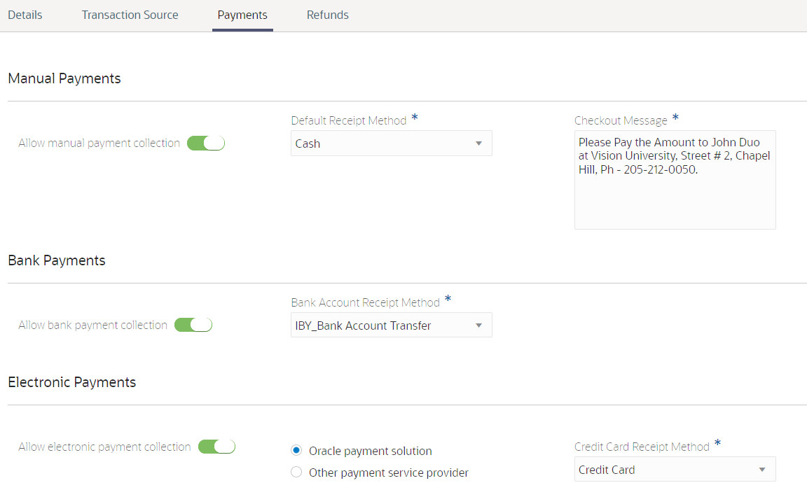 Prior to this release, institutions refunded excess credit through the original payment method. Individuals didn't have a way to let the institution know how they'd like to receive their refund payment. With this update, individuals can now set up their refund method preferences, letting institutions know how to send their refund payment. In this update, individuals can also set up more than one refund payment method, so if a preferred method isn't available, institutions can use a lower priority refund payment method to ensure refunds still go to the individual.