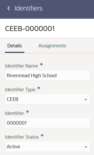 You can then assign identifiers to external organizations. View these organizations in the Assignments tab.